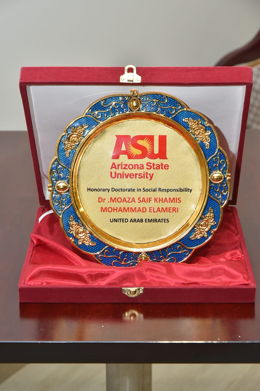 حصدت الدكتورة موزة سيف خميس العامري، من دولة الإمارات العربية المتحدة، الدكتوراه الفخرية من جامعة أريزونا بالولايات المتحدة الأمريكية، وذلك خلال فعاليات الندوة العلمية للعلوم الإنسانية لبناء الإنسان، التي عُقدت في شهر يناير 2026 بفندق النبيلة كايرو بجمهورية مصر العربية، تقديرًا لإسهاماتها النوعية في مجالات التنمية المجتمعية، وبناء القدرات، والتخطيط الاستراتيجي، وتمكين الأسرة.