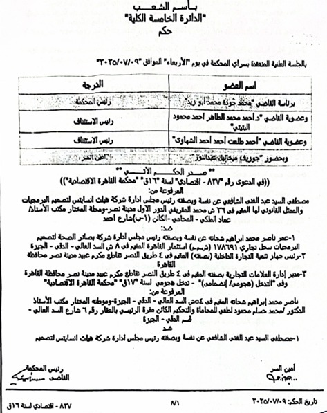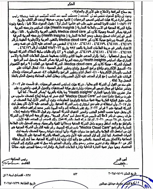 وأوضحت المصادر أن الأحكام القضائية المشار إليها تحسم بشكل نهائي مسألة ملكية حقوق الملكية الفكرية والعلامات التجارية المرتبطة بنظام Medica CloudCare، وأن أي استخدام أو عرض لتلك الحقوق دون سند قانوني يُعد مخالفة صريحة لأحكام القانون.