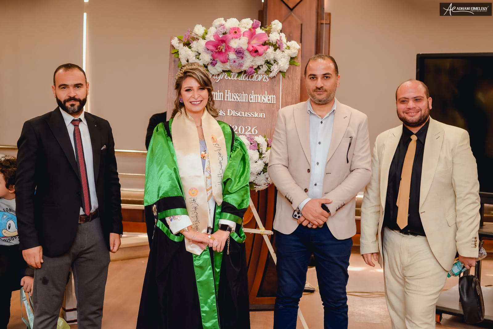 كما سادت أجواء من السعادة العائلية بحضور والدة الباحث الحاجة ماجدة، ولفيف من الأهل والأصدقاء والمهندسين والباحثين من مصر والدول العربية الشقيقة سوريا وفلسطين، الذين حرصوا على مشاركة الباحث فرحة هذا الإنجاز العلمي الرفيع.