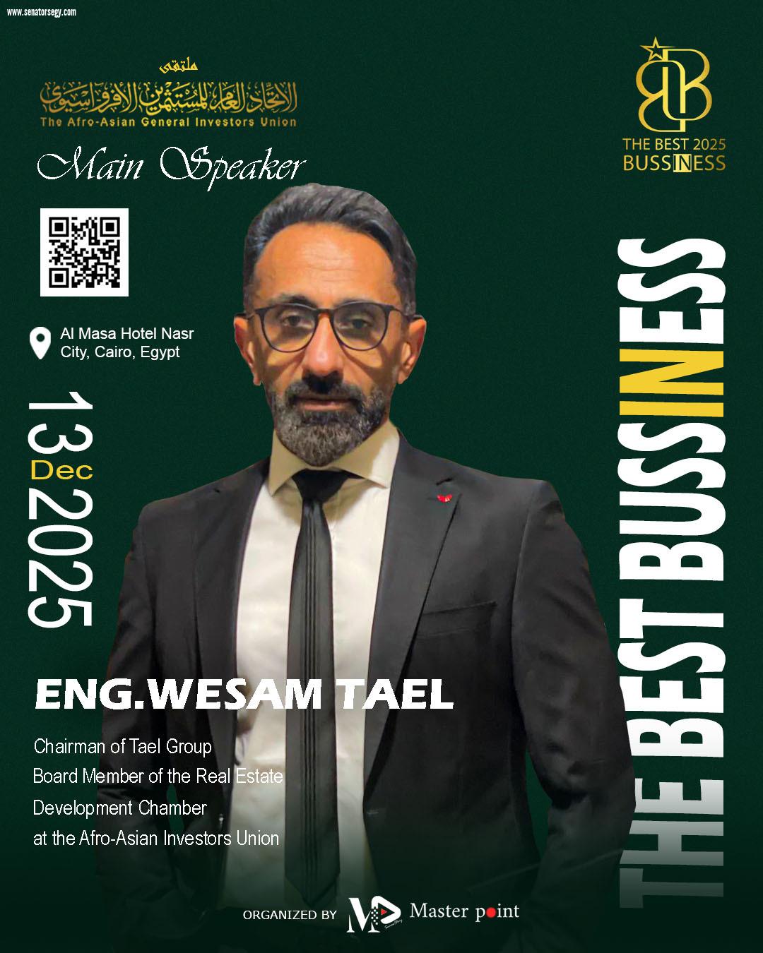 جدير بالذكر أن مؤتمر THE BEST IN BUSINESS 2025 سينعقد في 13 ديسمبر المقبل، بفندق الماسة بمدينة نصر، بمشاركة نخبة من الوزراء والسفراء وكبار رجال الاقتصاد والمستثمرين والمطورين والمُصنعين من دول القارتين الآسيوية والأفريقية، بهدف بحث سبل التعاون الفعّال ودفع عجلة الاقتصاد إلى الأمام، علاوة على توجيه رسالة شكر وعرفان لكل من ساهم في نهضة الاقتصاد المصري خلال عام 2025، وسيتضمن تكريمًا خاصًا لأهم الشخصيات المؤثرة في قطاعات المال والأعمال والعقار.