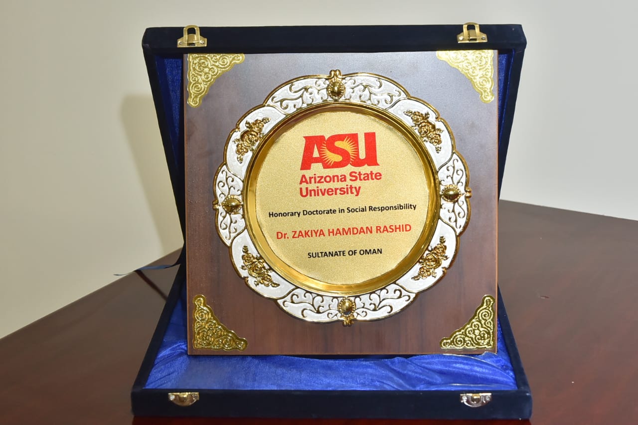 حصلت الدكتورة زكية بنت حمدان الفارسية، من سلطنة عُمان، على الدكتوراه الفخرية من جامعة أريزونا بالولايات المتحدة الأمريكية، وذلك خلال فعاليات الندوة العلمية للعلوم الإنسانية لبناء الإنسان، المنعقدة في شهر يناير 2026 بفندق النبيلة كايرو بجمهورية مصر العربية ، تقديرًا لإسهاماتها البارزة في مجالات حقوق الإنسان، وتمكين المرأة، والعمل الاجتماعي والإنساني على المستويين الإقليمي والدولي.