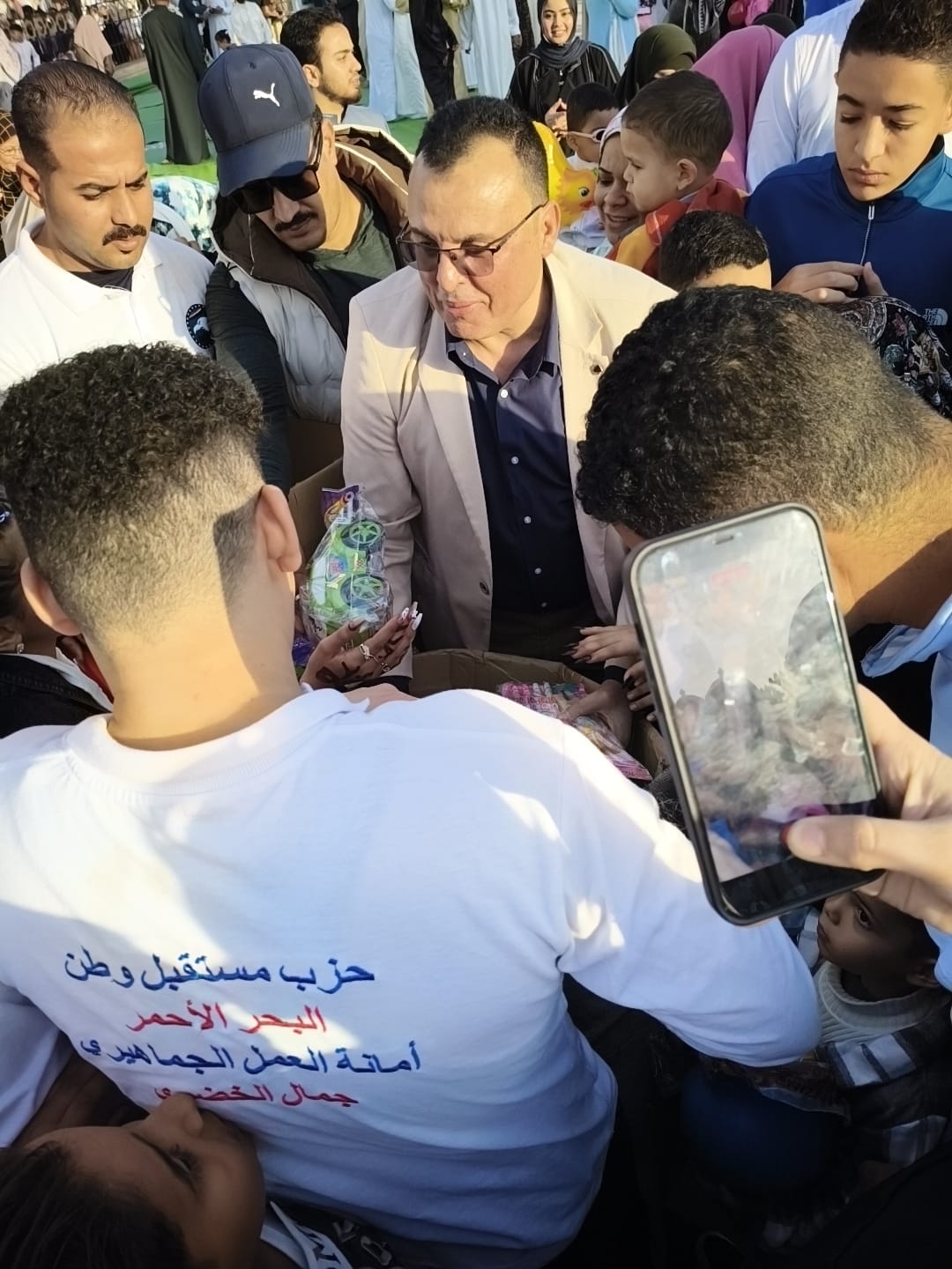 نظّمت أمانة العمل الجماهيري بحزب مستقبل وطن بمحافظة البحر الأحمر، بقيادة جمال الخضري يوسف، فعالية مجتمعية مميزة صباح اليوم أمام مسجد الميناء الكبير بمدينة الغردقة، وذلك احتفالًا بأول أيام عيد الفطر المبارك، حيث قامت الأمانة بتوزيع لعب الأطفال والهدايا على الصغار، في أجواء سادتها الفرحة والسرور بين الأهالي.